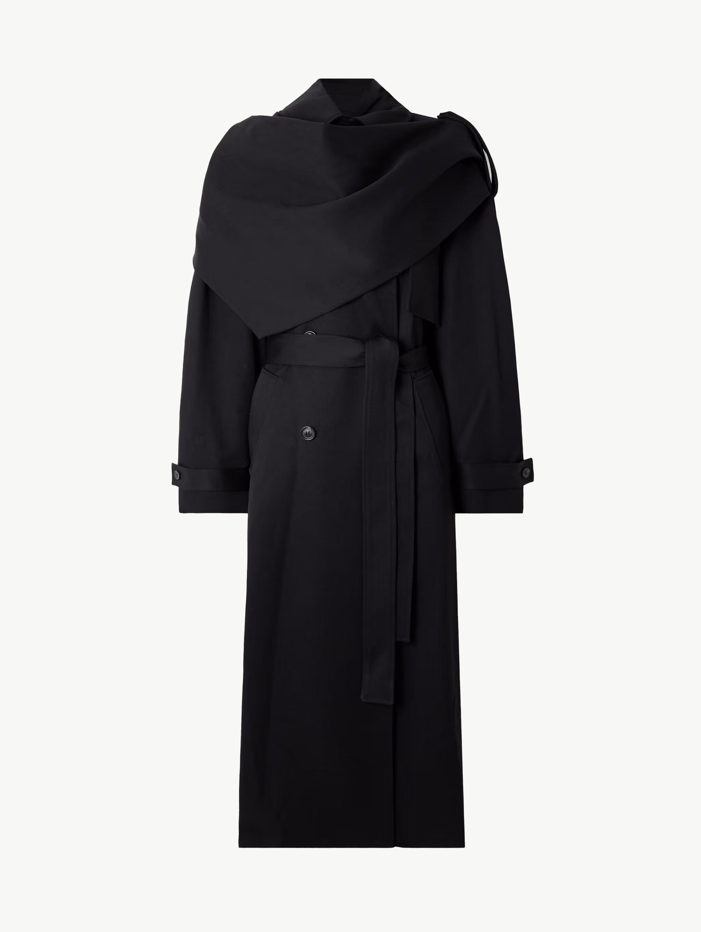 Scarf-effect wool trench coat
