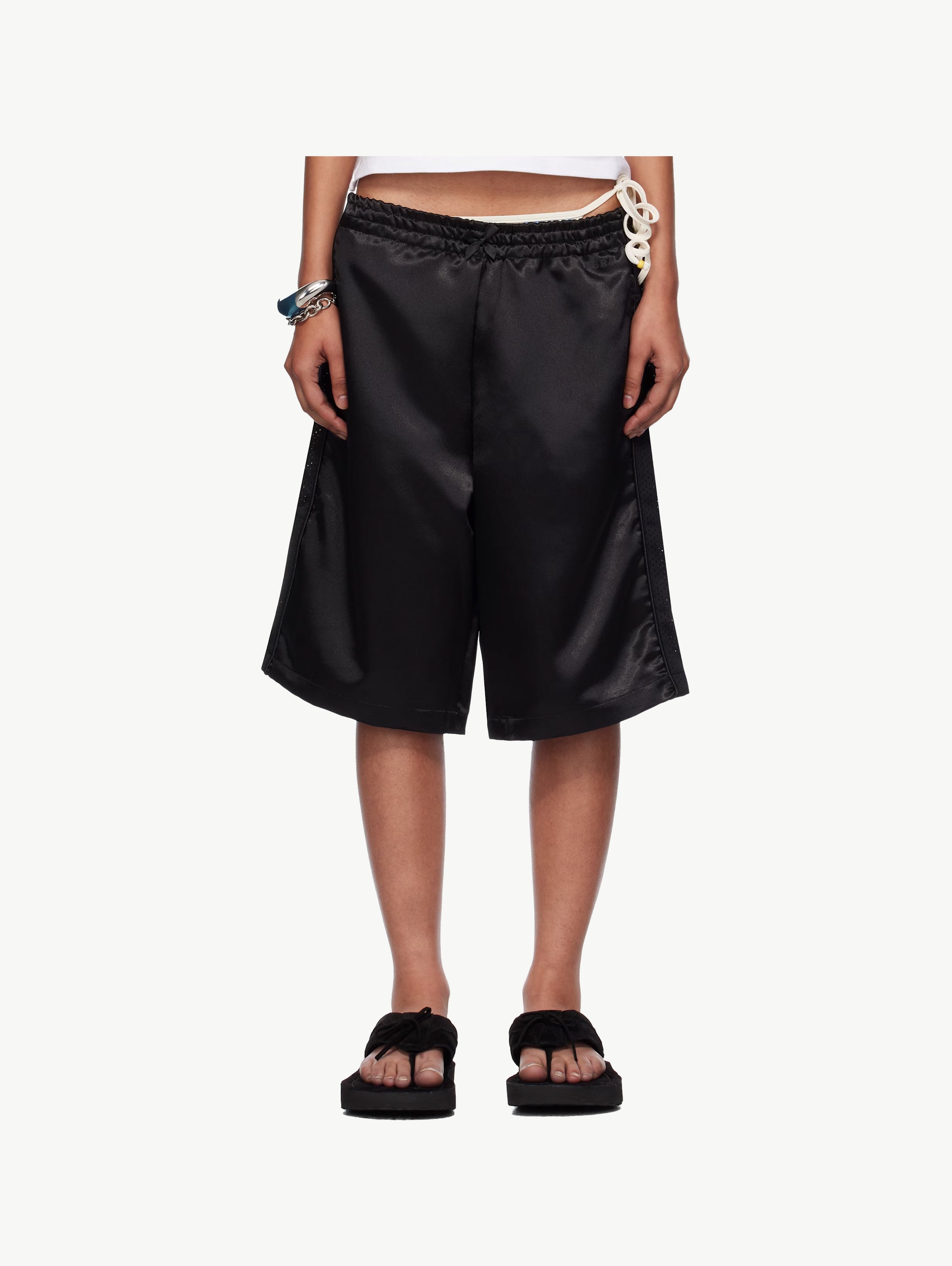 Open-knit silk shorts