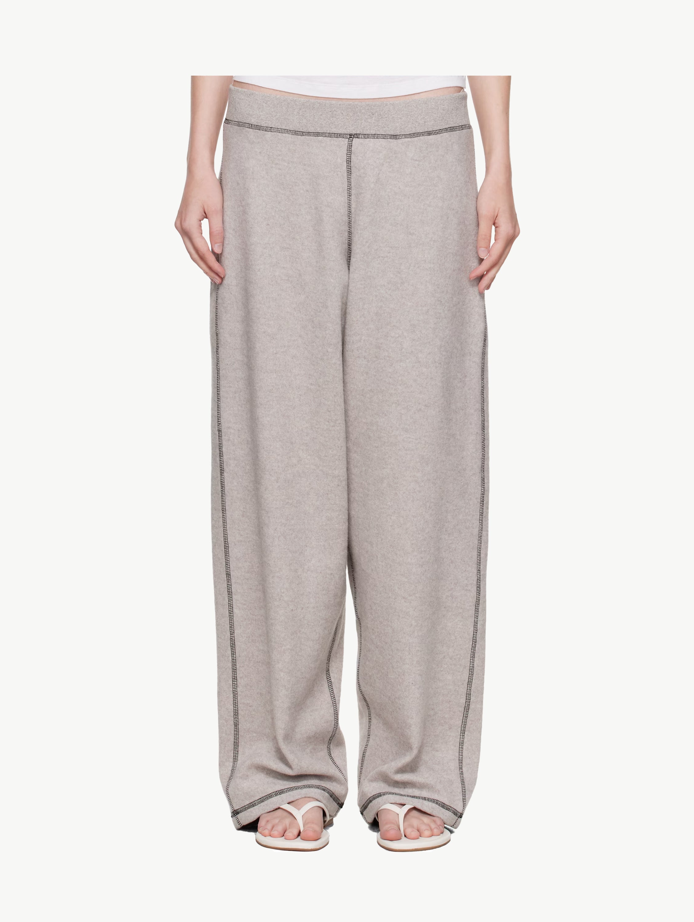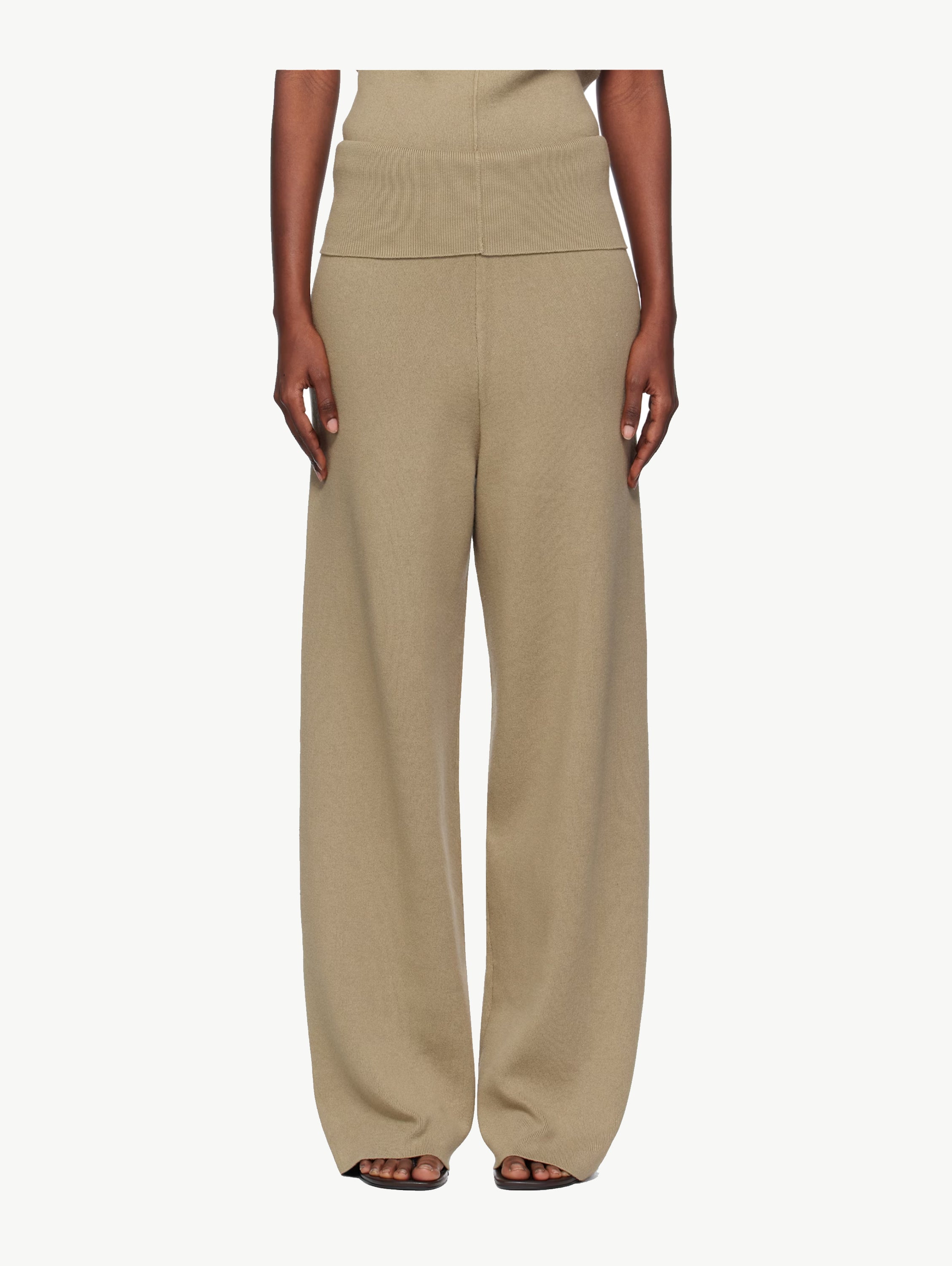 Beige fold over seam trousers