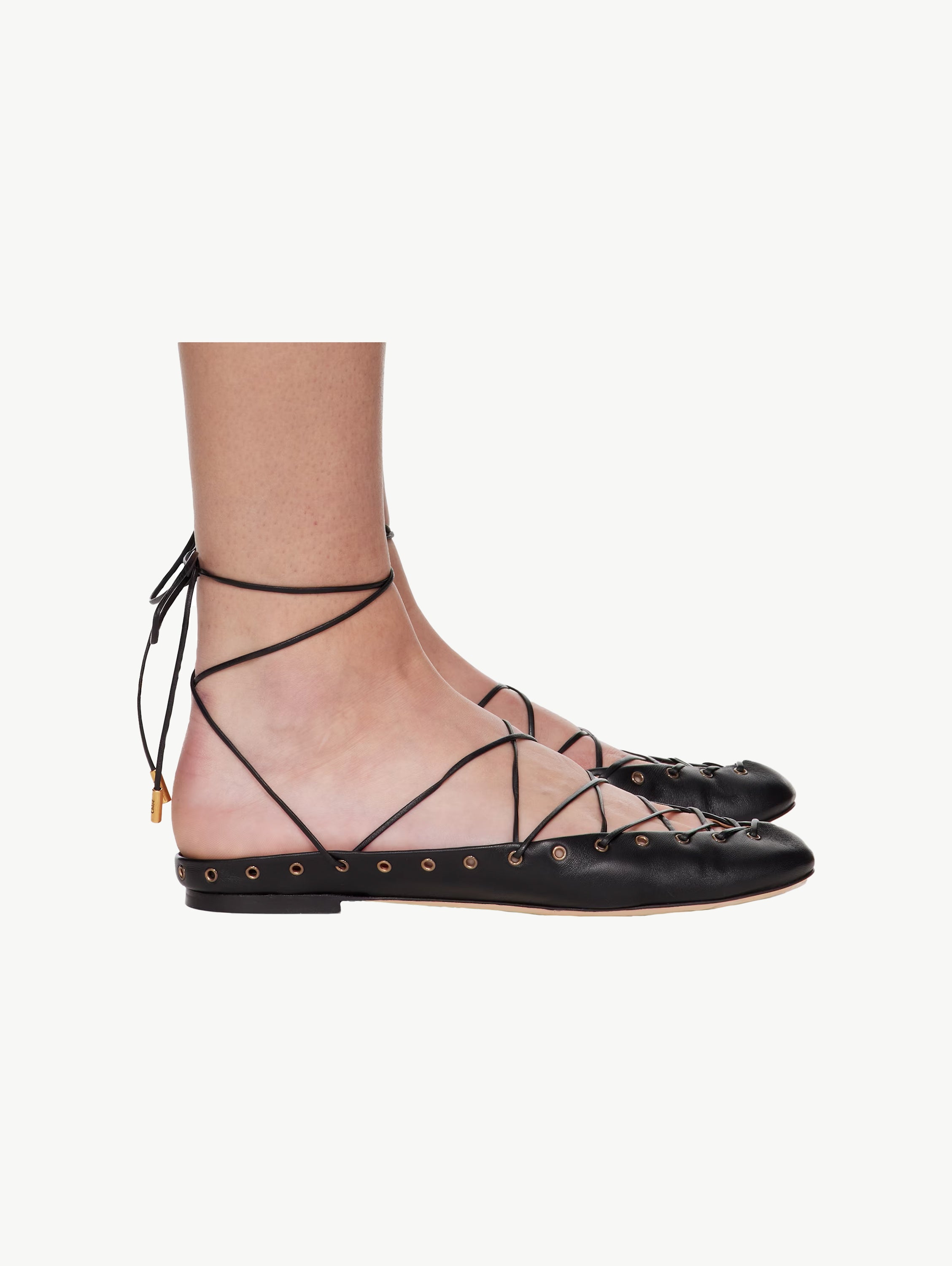 Black 'Chloé' ghillies ballerina flats